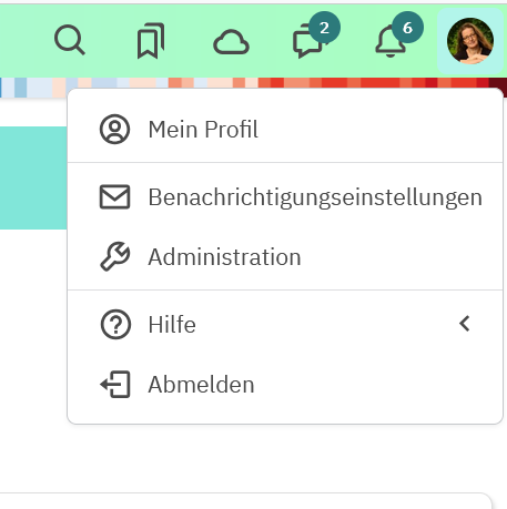 Damit du alles Wichtige mitbekommst, aber nicht mit E-Mails überschwemmt wirst, solltest die in deinem Profil die Benachrichtigungseinstellungen anpassen. Klicke dazu rechts oben auf dein Bild, bzw. den Anfangsbuchstaben und wähle den Menüpukt: